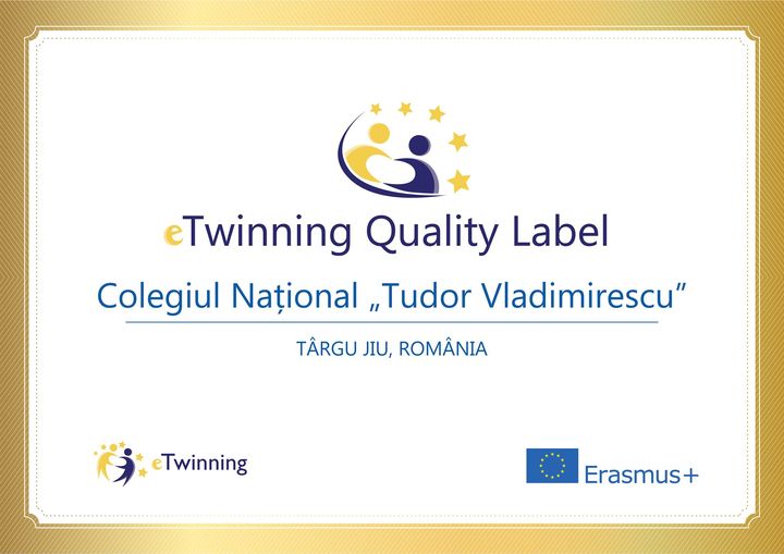 78 de școli din România au primit Certificatul de Școală eTwinning. Printre aceste 78 de unități de învățământ se numără și Colegiul Național ”Tudor Vladimirescu” Târgu-Jiu. Statutul de Școală eTwinning poate fi atins în urma parcurgerii unui traiect de dezvoltare, cu etape care pot fi evaluate obiectiv. Nu este o competiție, ci un proces de evoluție de la un nivel la altul.