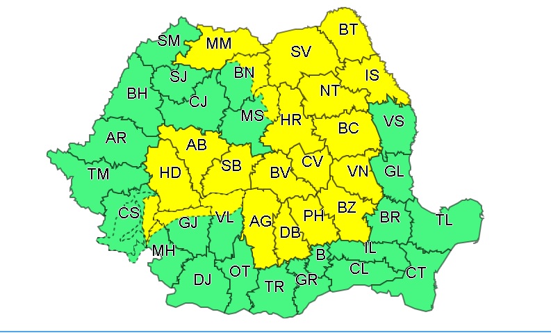 Cod galben de instabilitate în nordul judeţelor Mehedinţi, Gorj, Vâlcea