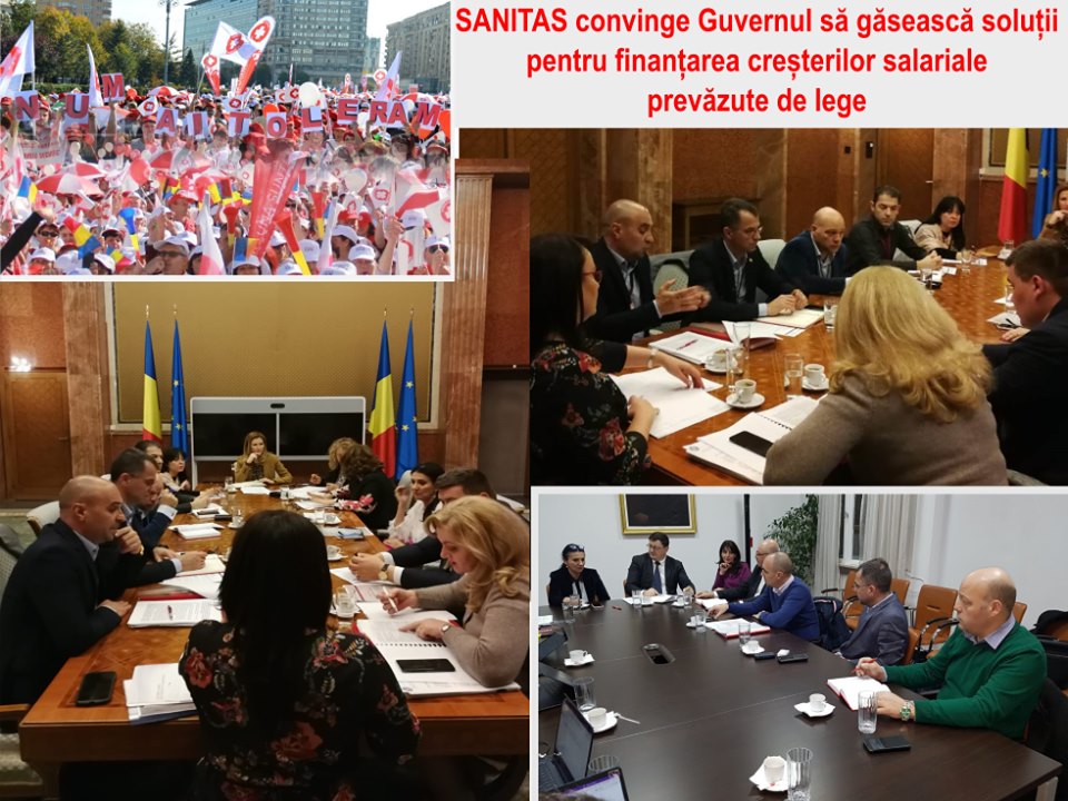 La întâlnirile din ultimele două luni, care au avut loc sub coordonarea directă a Cancelariei primului-ministru, ne-am concentrat pe rezolvarea celor mai imperative și urgente solicitări ale organizațiilor SANITAS afiliate la Federație și anume: asigurarea finanţării creşterilor salariale prin transfer de la bugetul Fondului naţional unic de asigurări sociale de sănătate și reluarea negocierilor Contractului Colectiv de Muncă la nivel de sector „Sănătate. Activități sanitar veterinare”, fără a omite, la niciuna din ședințele de lucru amintite, vreuna din celelalte solicitări ale membrilor noștri.