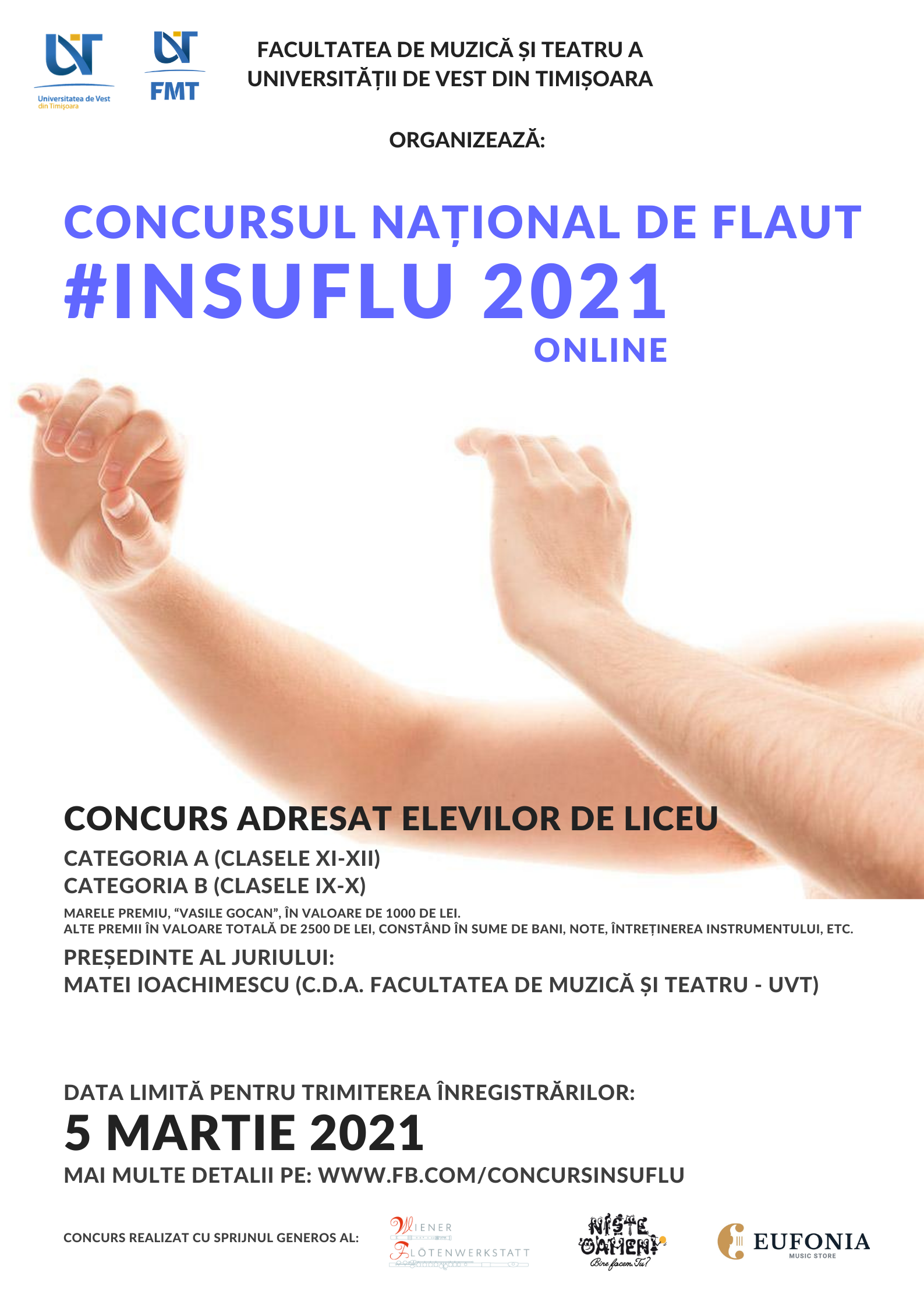 Liceenii din toată țara sunt invitați să participe la două noi concursuri online de interpretare, ambele lansate de Facultatea de Muzică şi Teatru din cadrul Universității de Vest Timișoara. Primul dintre ele este Concursul Naţional de Muzică Tradiţională, interpretare instrumentală şi vocală, dedicat elevilor de licee vocaţionale din clasele XI-a şi XII-a, iar cel de-al doilea este Concursul naţional de flaut ,,inSuflu”, care se adresează tot elevilor de liceu, şi…