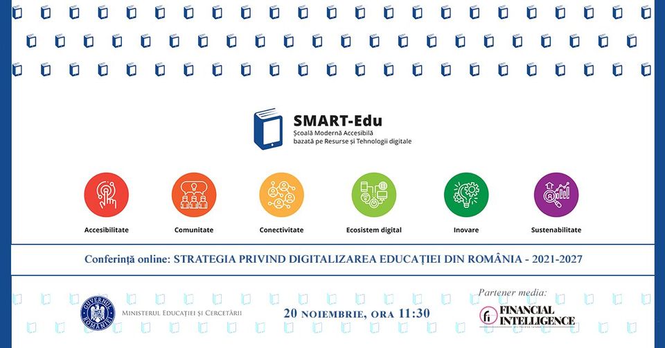 Vineri, de la ora 11:00, va organiza conferința ”Școală Modernă Accesibilă bazată pe Resurse și Tehnologii digitale”. Evenimentul se va desfășura online. ”Vă invităm să participați la primul eveniment care deschide consultarea publică pentru elaborarea „Strategiei privind digitalizarea educației din România 2021-2027 // SMART-Edu”. Conferința va fi transmisă live pe canalele de comunicare ale Ministerului Educației și Cercetării (YouTube,