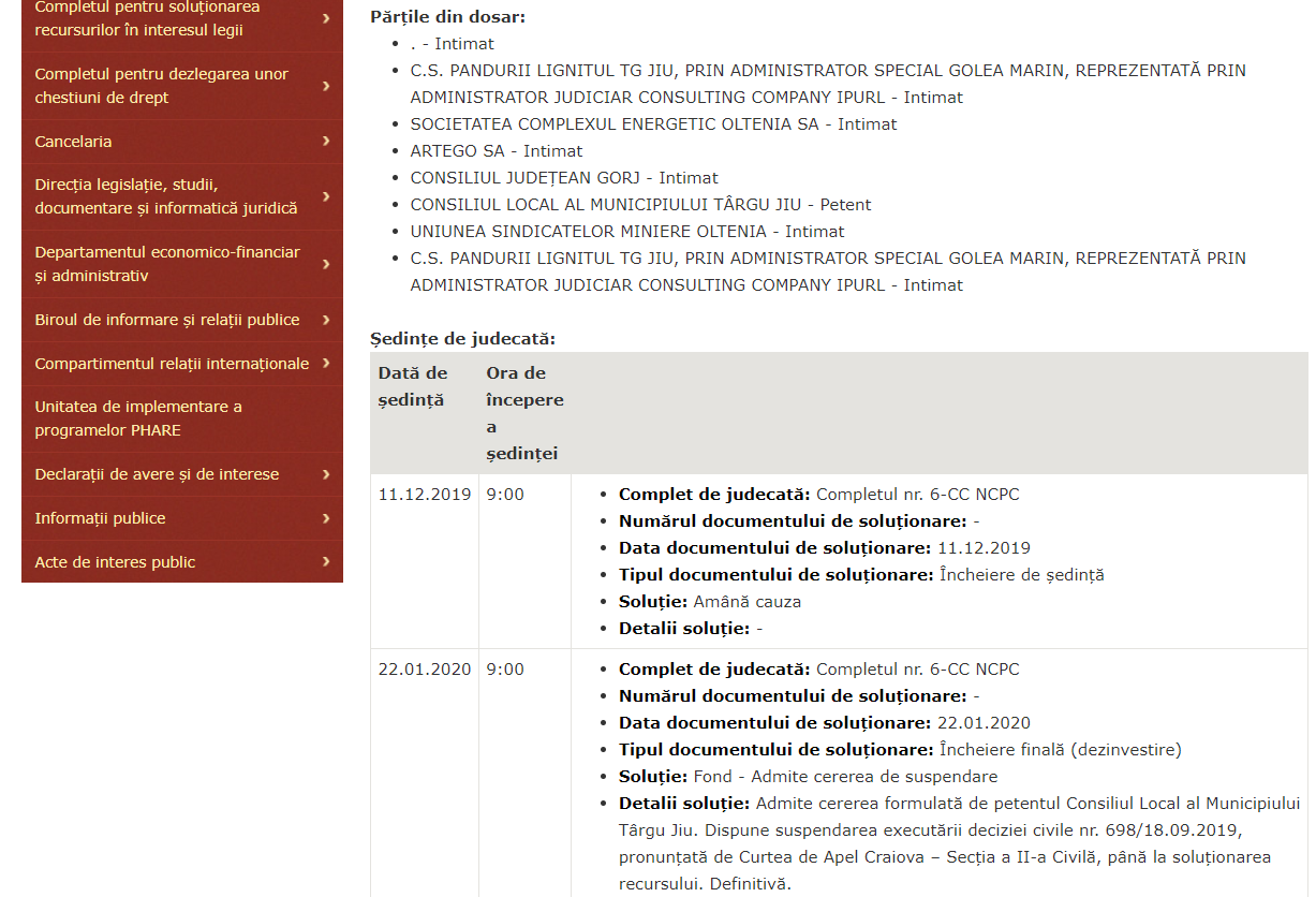 Magistrații Înaltei Curți de Casație și Justiție au admis astăzi cererea Consiliului Local Târgu-Jiu și au dispus suspendarea executării deciziei civile a Curții de Apel Craiova date în septembrie în procesul cu clubul lui Marin Condescu, până la soluționarea recursului. Practic, CS Pandurii Lignitul Târgu-Jiu nu mai poate pune poprire pe conturile Primăriei Municipiului, juriștii CL demonstrând instanței că salariile angajaților, în atare condiție, erau în pericol…