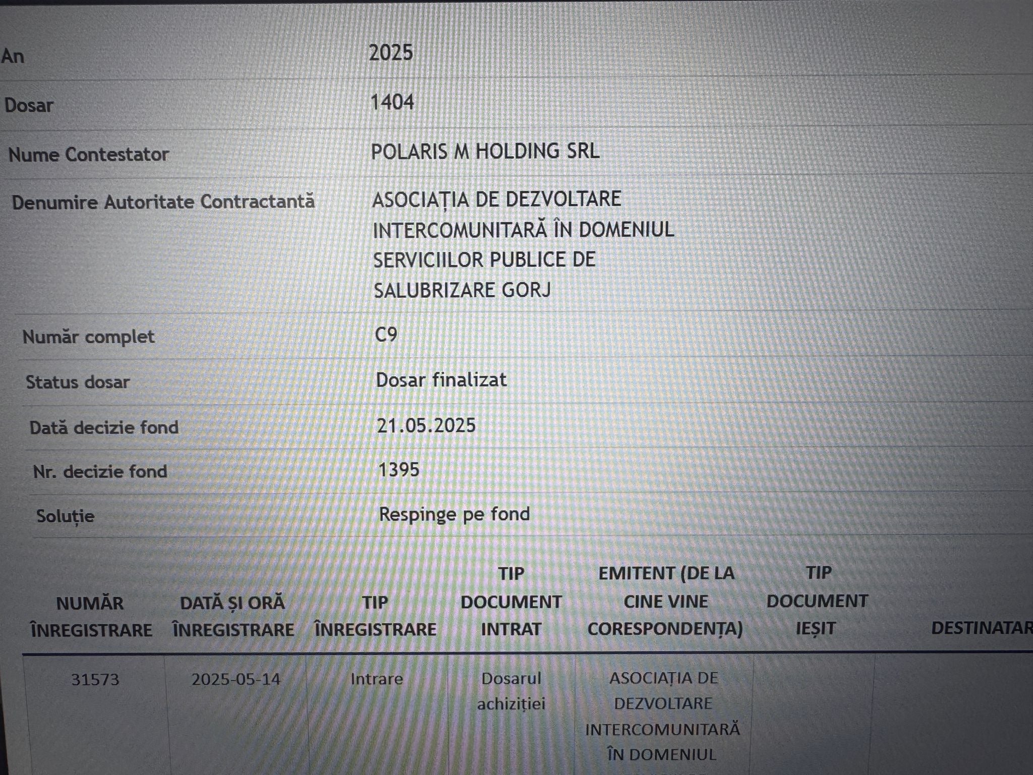 Asociația de Dezvoltare Intercomunitară pentru Salubrizare (ADIS) informează că procedura de achiziție publică pentru delegarea serviciului de colectare a deșeurilor municipale din 51 de localități ale județului Gorj a fost validată și de Consiliul Național de Soluționare a Contestațiilor (CNSC).