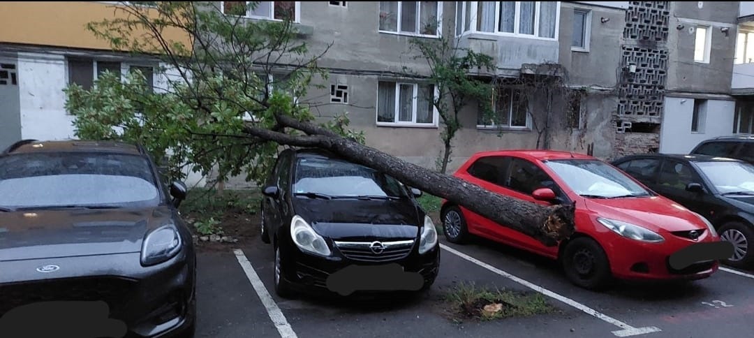 Vijelia a făcut pagube la Motru, în județul Gorj, unde un arbore a căzut pe un autoturism. Direcția Publică Motru evaluează situația și intervine la fața locului.
