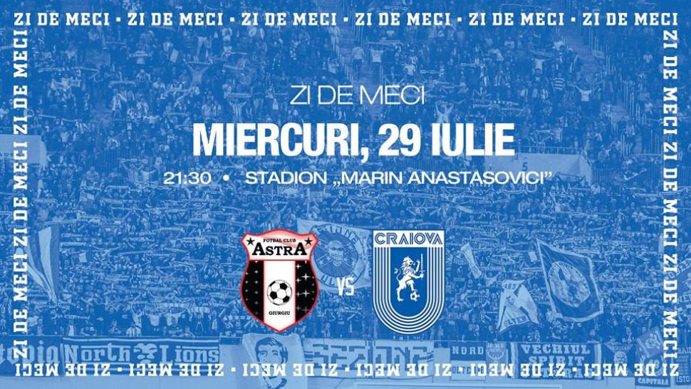 Astra trebuia să joace miercuri seara cu CSU Universitatea Craiova, de la ora 21:30, dar meciul nu se va mai juca din cauza coronavirusului. Mijlocașul croat Ljuban Crepulja a acuzat anumite probleme medicale și a fost testat pentru COVID-19 de șefii Astrei fiind declarat pozitiv.