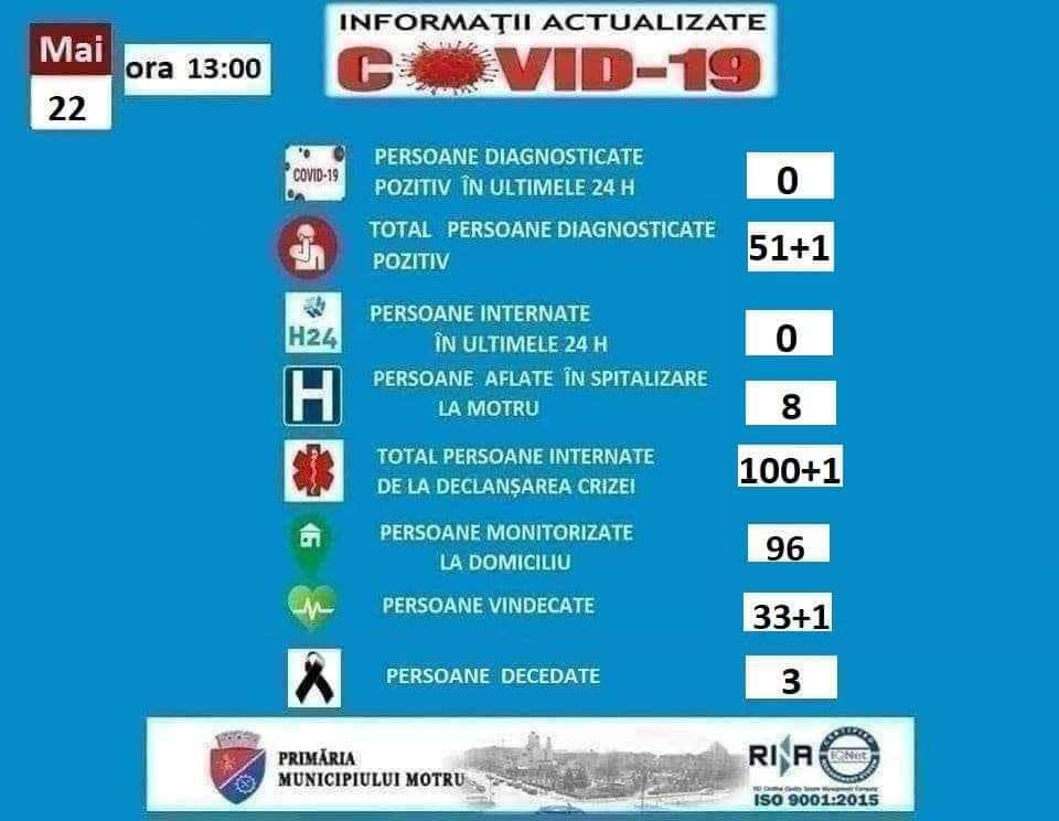 “De la declanșarea pandemiei de SarsCov2, în Municipiul Motru situația este următoarea: