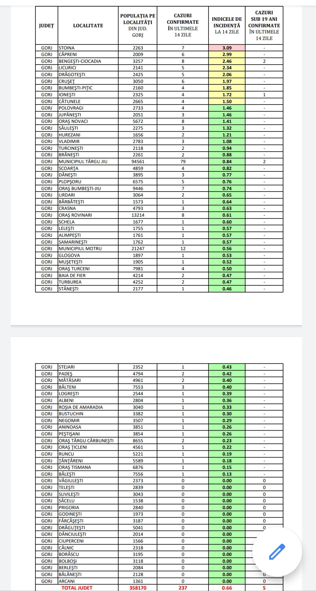 COVID-19: Localitate din Gorj, în scenariul roșu