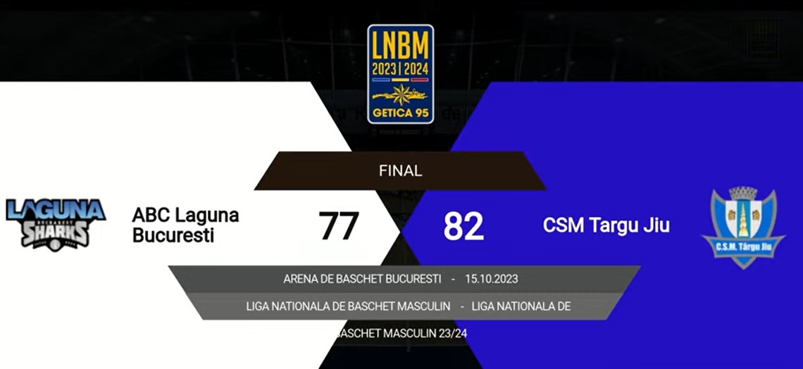 CSM Târgu Jiu a înregistrat, duminică, cea de-a doua victorie consecutivă din actualul sezon, după ce a câștigat, în deplasare, scor 82-77, în faţa formației Laguna București. Meciul a contat pentru etapa a 4-a a Ligii Naționale de Baschet Masculin Getica 95. Americanul Ethan Wright a fost cel mai eficient jucător al formației gorjene, cu 23 de puncte înscrise.
