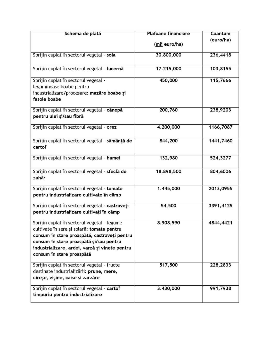 Potrivit art. 1, alin (6), din Hotărârea de Guvern nr. 492 din 28.04.2021 pentru aprobarea plafoanelor financiare alocate măsurilor de sprijin cuplat în sectorul vegetal pentru anul de cerere 2020 – “Cuantumul pe unitatea de măsură pentru fiecare…