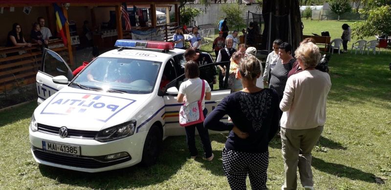 ,,În cadrul acestei activităţi, beneficiarilor complexulu le-a fost prezentată o autospecială de poliție rutieră, ce a constituit un punct de atracție, aceștia fiind interesați de modul în care este utilizată și funcționează aparatura din dotarea autoturismului. Beneficiarii complexului au devenit pentru câteva momente poliţişti rutieri, folosind staţia din dotarea autospecialei şi semnalele acustice şi luminoase.