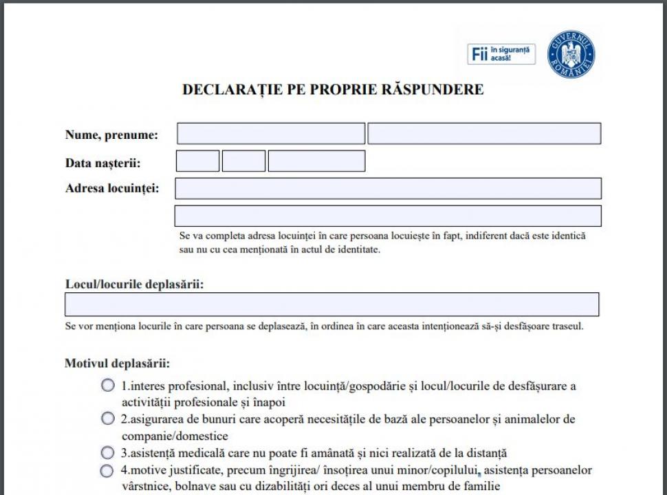 Noua versiune: descarca aici declaratia pe propria raspundere pentru starea de urgenta, versiunea simplificata.