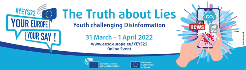Comitetul Economic și Social European (CESE) va organiza, online, în perioada 31 martie – 1 aprilie 2022, cea de-a 13-a ediție a manifestării „Europa ta, părerea ta!” / Your Europe, Your Say! 2022. Evenimentul face parte din seria de acțiuni organizate pentru tineret în cadrul Conferinței privind viitorul Europei și are ca temă „Adevărul despre minciuni. Tinerii în fața provocărilor dezinformării”. 33 de școli (câte una din cele 27 de state membre ale UE și din cele…
