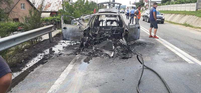 Autoturismul a fost distrus aproape în totalitate, poliţiştii deschizând un dosar penal pentru distrugere. Nicio persoană nu a fost rănită.