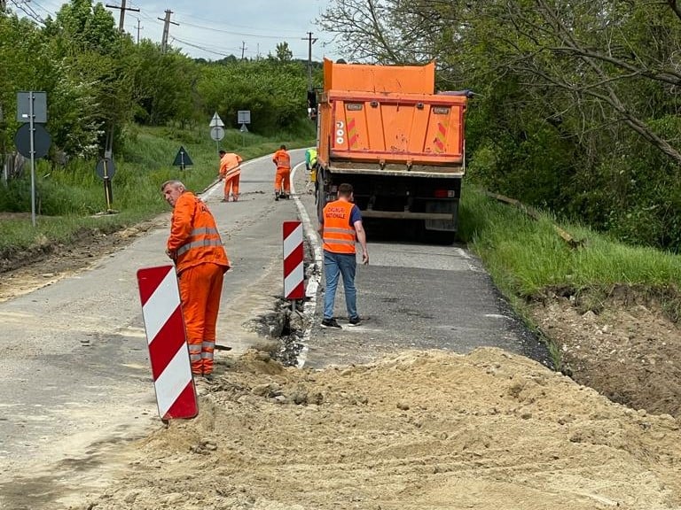 Intervenții urgente pe DN 67 B din comuna gorjeană Logrești. „Pentru că pe Drumul Național 67 B, în localitatea Logrești, în apropiere de sediul primăriei, mi-a fost semnalată o situație de urgență, m-am deplasat ieri la fața locului. Pârâul Amaradia a erodat malul și a afectat structura părții carosabile, care s-a dislocat, iar circulația se desfășura în condiții dificile.