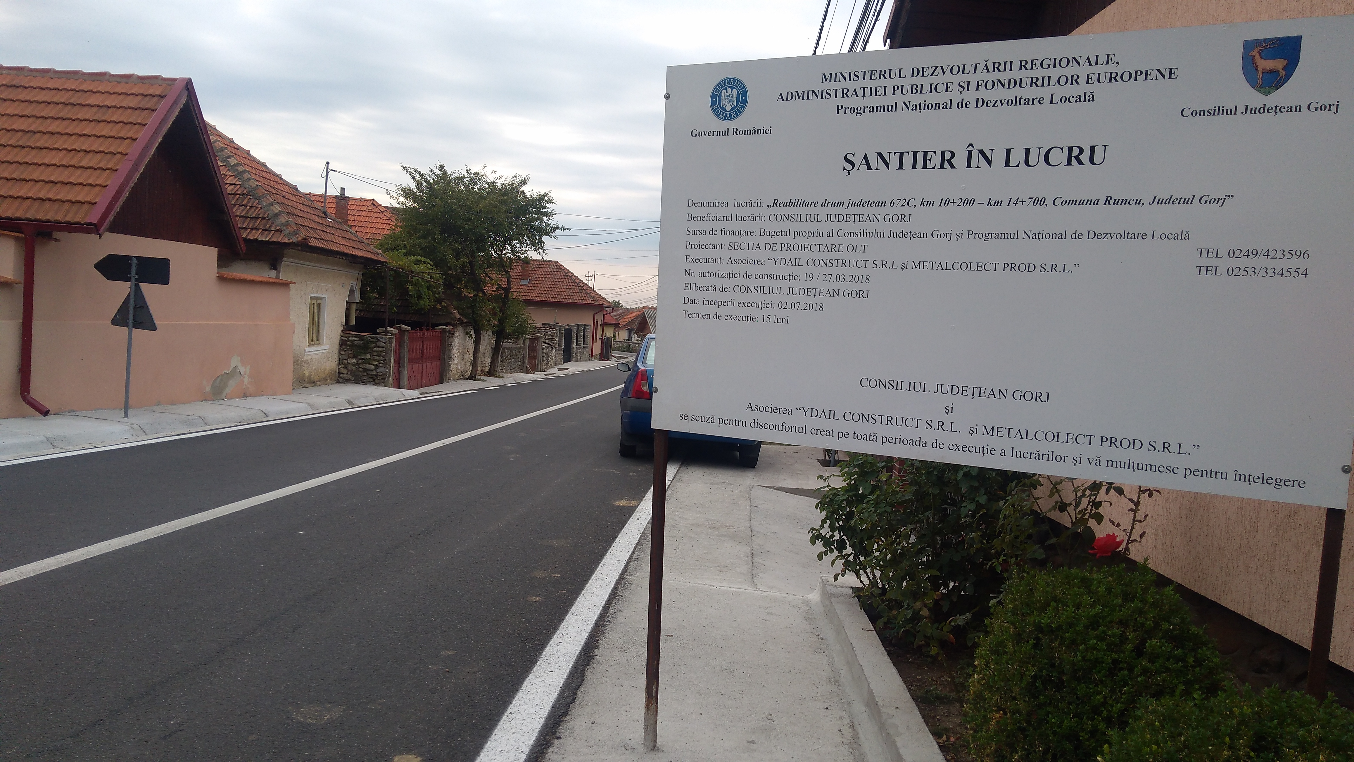 În comuna Runcu au fost până de curând trei drumuri județene în lucru. Acum au mai rămas două, după ce unul a fost finalizat cu trei luni înainte de termen, drumul fiind finanțat pe PNDL. Este vorba despre DJ 67C realizat de Ydail Construct și Metalcolectprod SRL. Investiția trebuia finalizată în 15 luni de la începerea lucrărilor. În Runcu sunt 26 de pensiuni funcționale, plus alte 6 în lucru. Comuna este una turistică ce se mândrește cu cel mai mare număr de pensiuni din zonă, a explicat primarul localității, Adi Câmpeanu.