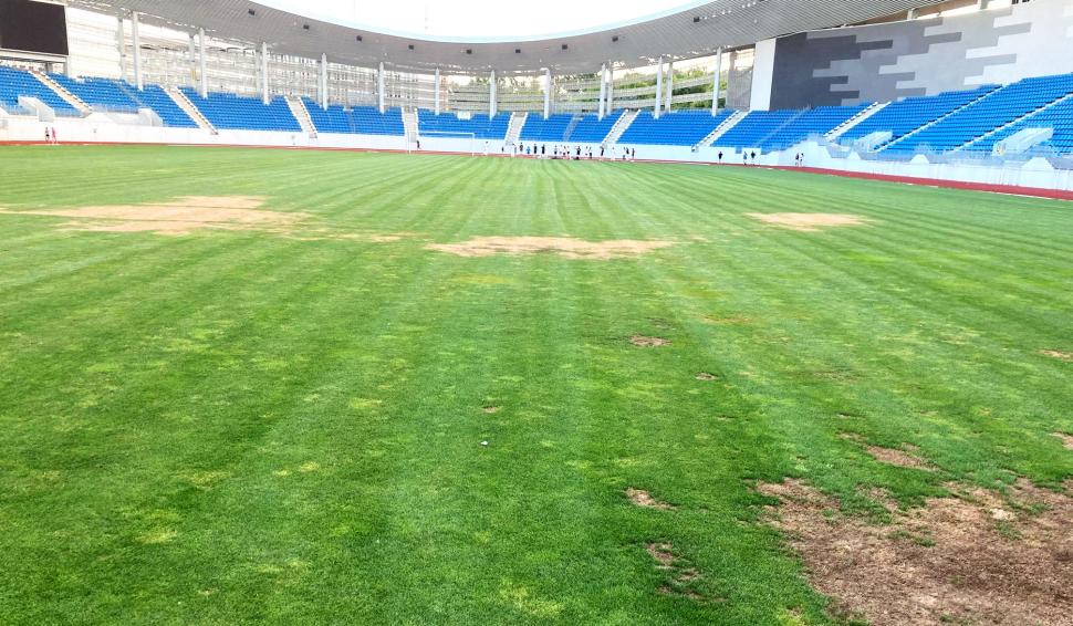 Terenul de joc din incinta Stadionului Municipal din Târgu Jiu se prezintă foarte prost la primul meci oficial al noului sezon. Cândva cel mai bun teren de joc din ţară, terenul de la Târgu Jiu are acum suprafeţe foarte mari fără iarbă, aceasta fiind afectată de o boală specifică gazoanelor după festivitățile care au avut loc la începutul verii pe suprafaţa de joc.
