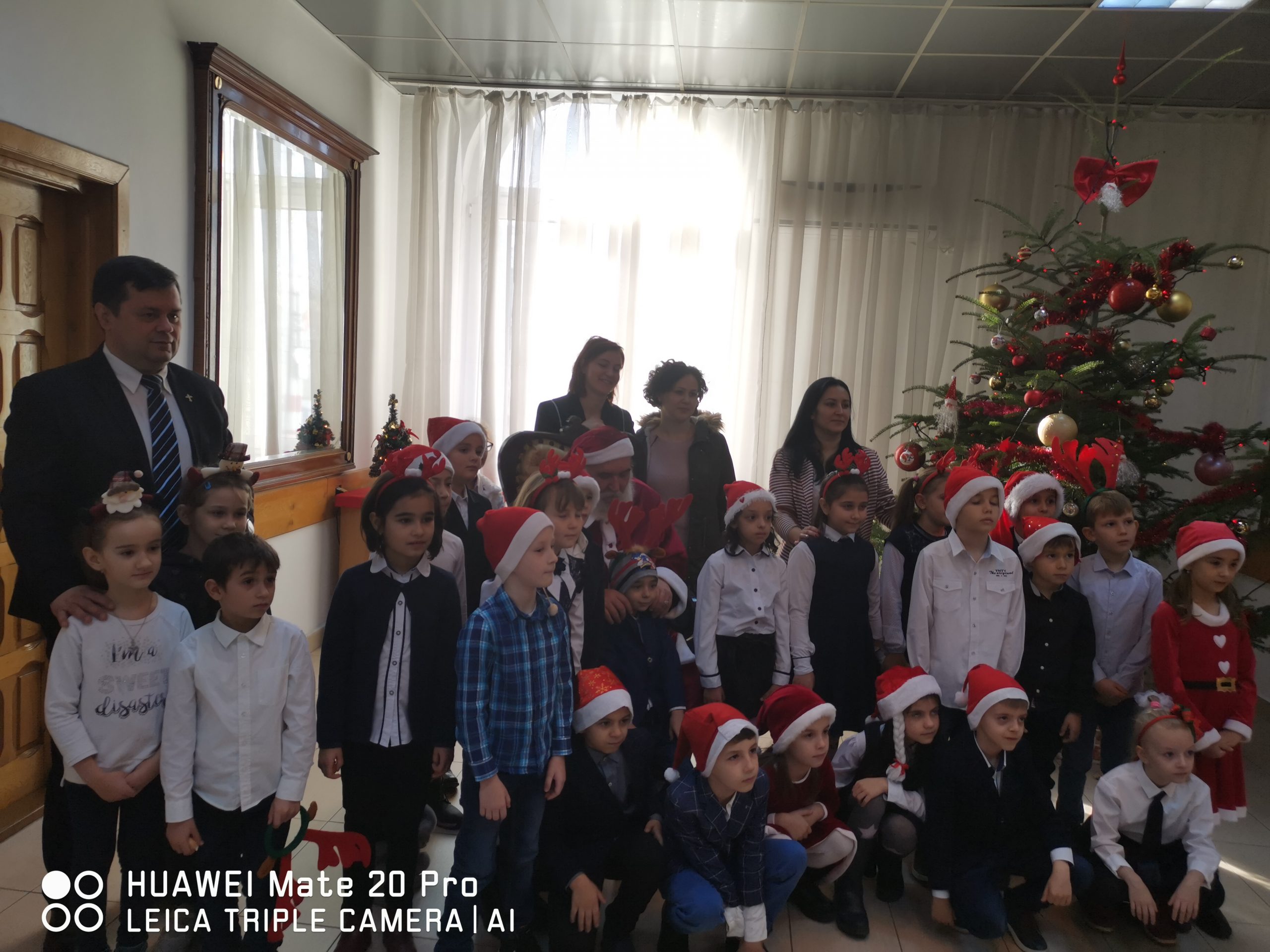 Elevii claselor I A și I B de la Școală Gimnazială “Pompiliu Marcea” întâmpină așa cum se cuvine Sărbătoarea Crăciunului. Însoțiți de cele două învățătoare, cei mici au făcut astăzi o vizită primarului Municipiului Târgu Jiu, Marcel Romanescu. Elevii l-au colindat pe acesta dar și pe Moș Crăciun, care, în aceste zile a poposit în incinta Primăriei Târgu Jiu pentru a primi grupurile de colindători din municipiu. Cu emoții în glas, copiii i-au făcut o bună…
