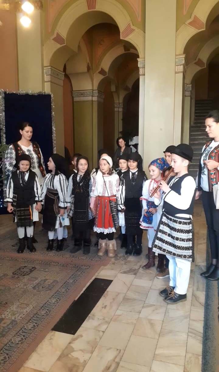 Elevii de la clasele I-a și a II-a de la Școala Gimnazială Pociovaliștea, însoțiți de învățătoarele lor, Popa Delia și Constantinescu Simona, au colindat, ieri, la Târgu-Jiu, autoritățile din Palatul Administrativ.