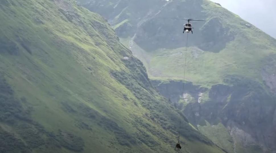 Vacile rănite în timpul șederii lor de vară în pajiștile alpine elvețiene sunt transportate la veterinar cu elicopterul, relatează Reuters.