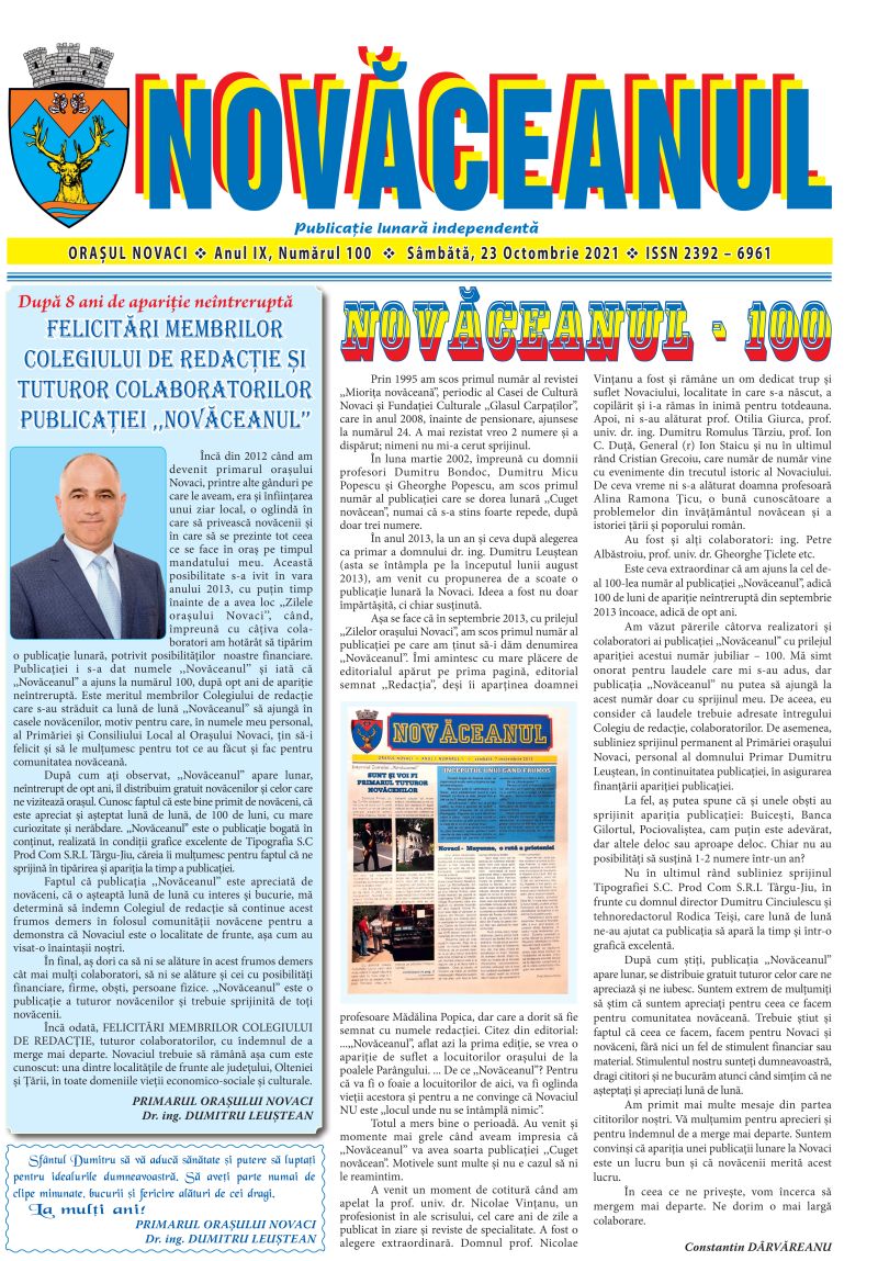 Am primit, mai întâi, un telefon prin care scriitorul Constantin Dârvăreanu mă anunța că publicația lunară independentă NOVĂCEANUL a ajuns la 100 de luni de când apare, iar acum am exemplarul superb în fața ochilor, numai bun de citit.
