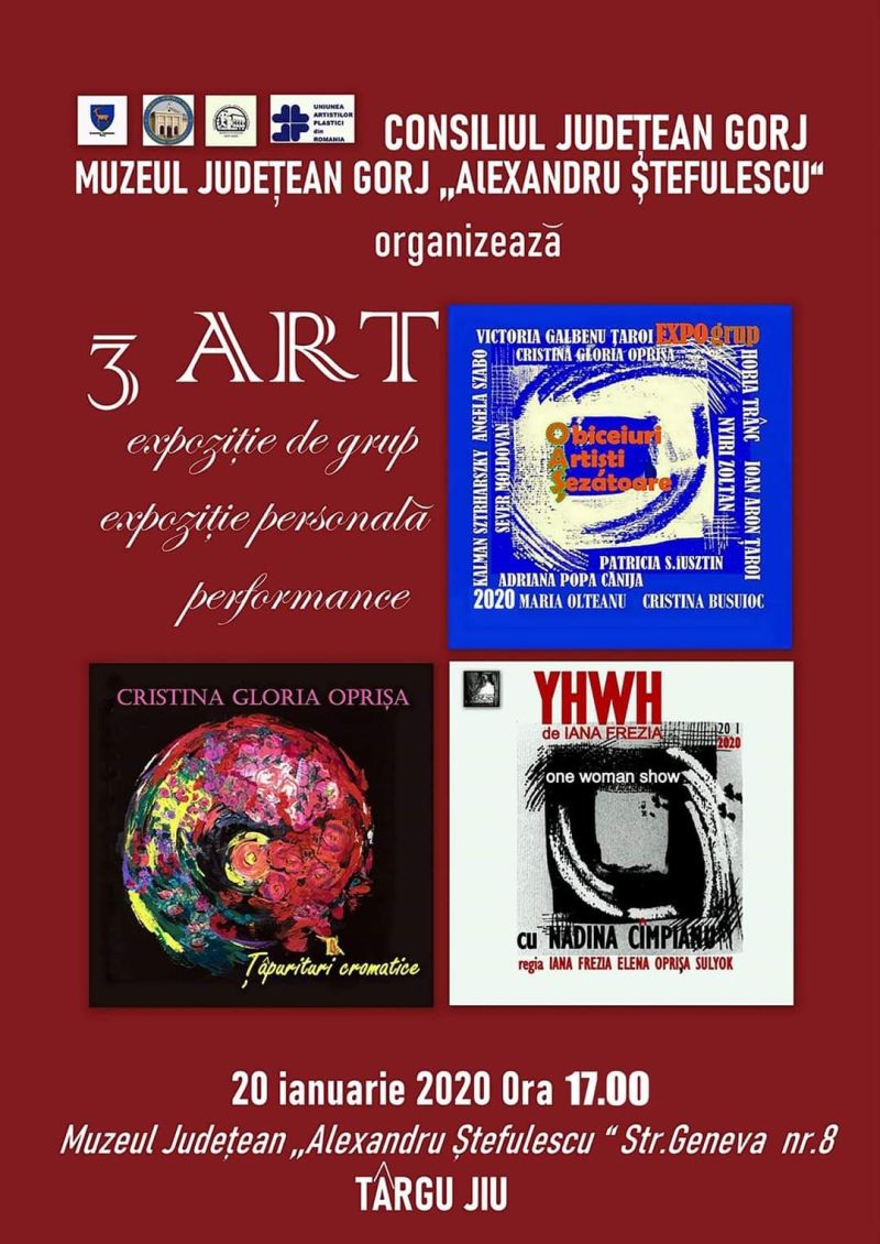 În această după amiază, de la ora 17.00, la Muzeul Județean Gorj ,,Alexandru Ștefulescu” din Târgu-Jiu va avea loc un triplu eveniment artistic. Este vorba despre expoziția de grup ,,OAȘ – Obiceiuri. Artiști. Șezătoare” (în care expun artiștii Cristina Busuioc, Adriana Popa Canija, Patricia S. Iusztin, Sever Moldovan, Maria Olteanu, Cristina Gloria Oprișa, Angela Szabo, Kalman Szthrarszki, Horia Trânc, Victoria Galbenu Țaroi, Ioan Aron Țaroi și Nyiri Zoltan),…