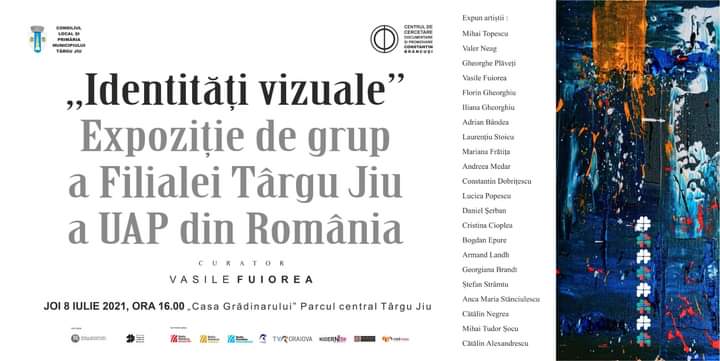 Centrul de Cercetare, Documentare și Promovare “Constantin Brâncuşi” și Primăria Municipiului Târgu Jiu, în parteneriat cu Filiala Târgu Jiu a UAP din România, organizează în data de 08 iulie 2021, ora 16.00, în cadrul „Colocviilor Brâncuși”, la Galeria „Casa Grădinarului” – Parcul Central Târgu Jiu, vernisajul expoziției de grup „Identități vizuale” a membrilor Filialei Târgu Jiu a UAP din România. Curator: Vasile Fuiorea. “Expun artiștii: Mihai…