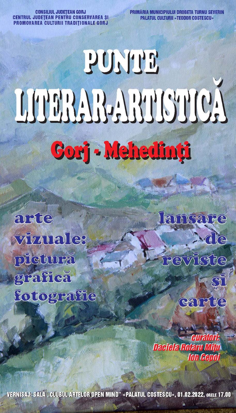 Centrul Județean pentru Conservarea și Promovarea Culturii Tradiționale Gorj organizează marți, 1 februarie, vernisajul expoziției „Punte literar-artistică Gorj-Mehedinți”.