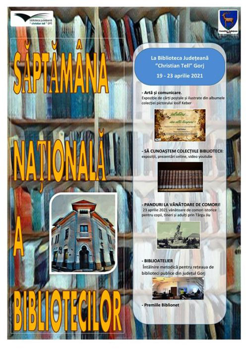 Biblioteca Județeană ,,Christian Tell” va organiza, zilele acestea, mai multe evenimente menite a marca Săptămâna Națională a Bibliotecilor. Printre acestea se numără expoziții virtuale, dar și o vânătoare de comori istorice prin Târgu-Jiu.