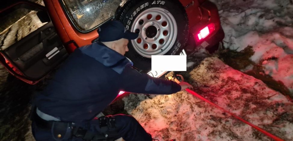O familie formată din trei persoane, din Craiova, a rămas înzăpezită pe un drum din Valea Sohodolului, din judeţul Gorj. Jandarmii au venit în ajutorul lor.