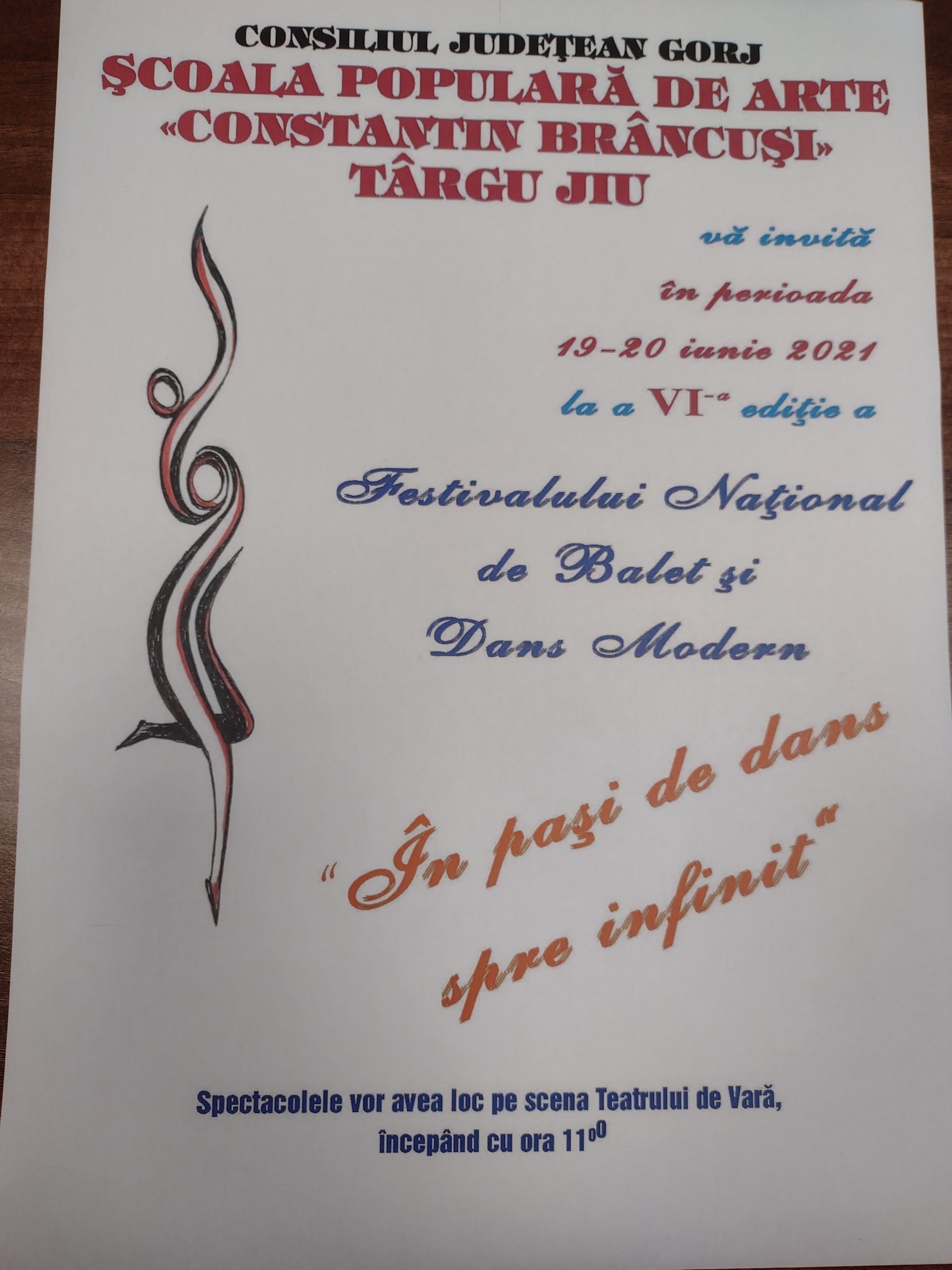 În perioada 19-20 iunie, la Târgu Jiu, se va desfășura cea de-a VI-a ediție a Festivalului de Balet și Dans modern “În pași de dans spre INFINIT”. La concurs s-au înscris circa 300 de copii din mai multe județe ale țării.
