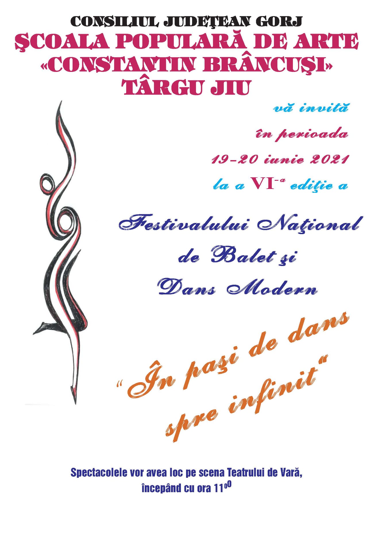 La sfârșitul săptămânii trecute, la Târgu-Jiu, s-a desfășurat cea de-a VI-a ediție a Festivalului de Balet și Dans modern ”În pas de dans spre Infinit”, organizat de Școala Populară de Arte ”Constantin Brâncuși”. Anul acesta, trofeul secțiunii balet a fost adjudecat de o clujeancă, în timp ce trofeul secțiunii dans modern a rămas în Gorj. Redăm mai jos palmaresul complet al festivalului: