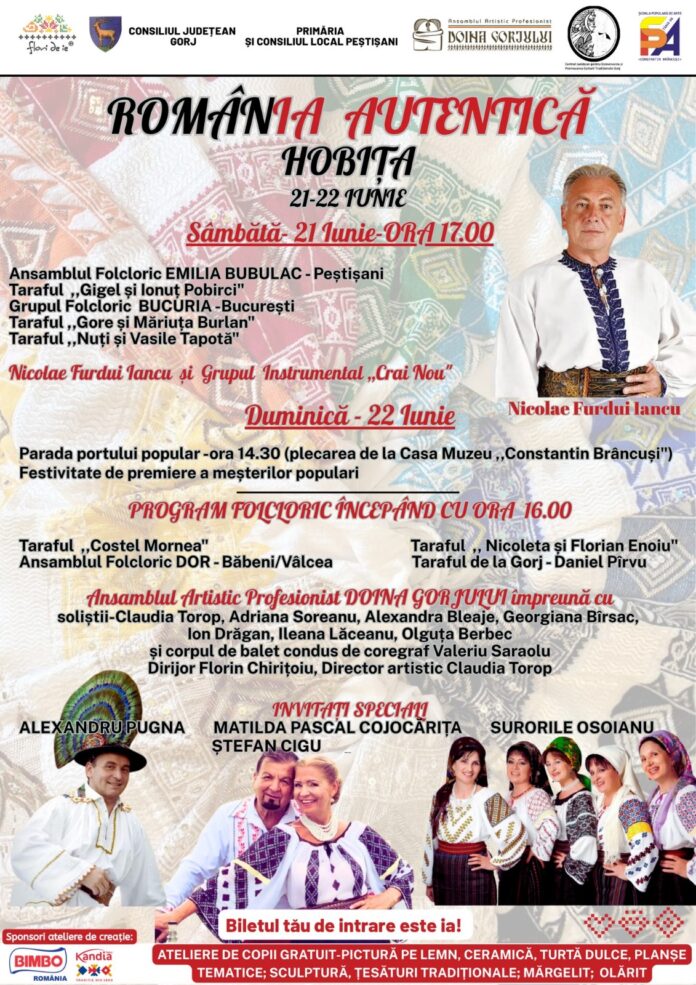 Festivalul „România Autentică” debutează astăzi, 21 iunie, în satul Hobița din județul Gorj, locul de naștere al sculptorului Constantin Brâncuși. Timp de două zile, vizitatorii vor avea parte de un adevărat regal al tradițiilor românești, într-un eveniment organizat de Consiliul Județean Gorj.Peste 130 de meșteri și artizani din toate colțurile țării sunt prezenți la…