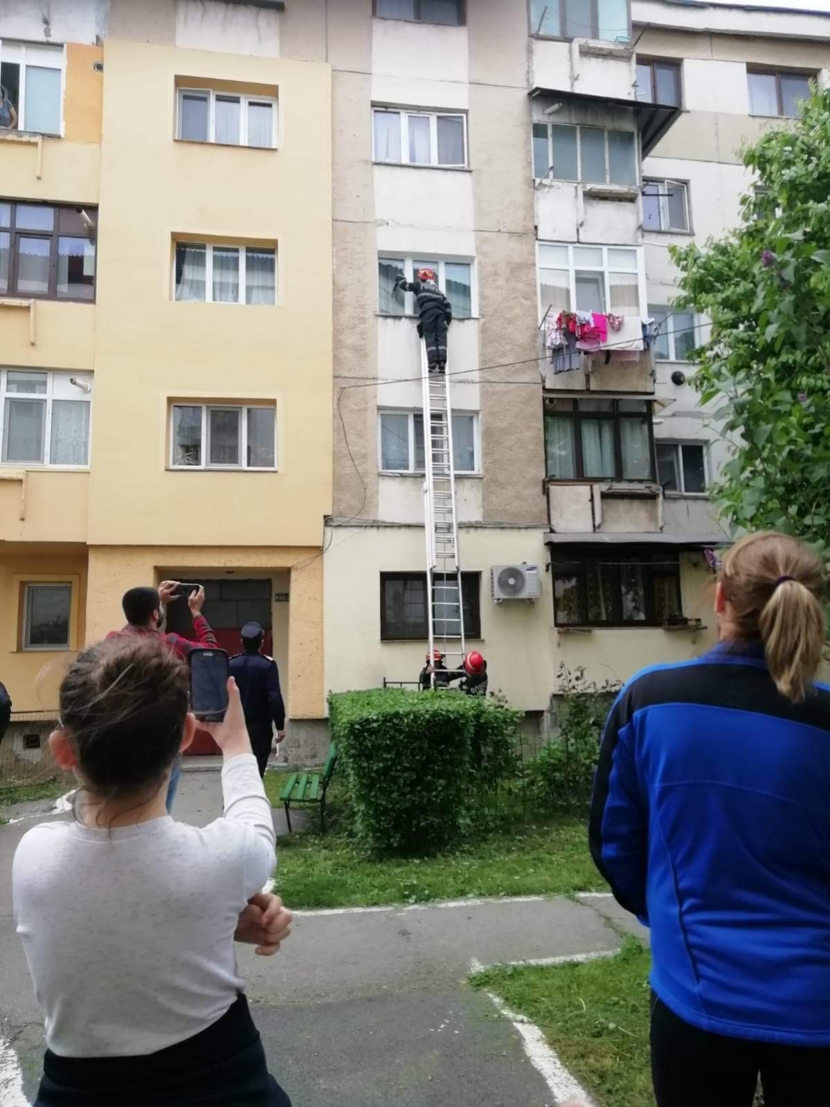 Alarmă pe strada Dacia din municipiul Târgu Jiu, după ce o fetiță a rămas blocată în casă. Mama fetiței a părăsit locuința pentru câteva minute, ieșind în holul imobilului, moment în care ușa apartamentului s-a închis. Mama a încercat cu disperare să deblocheze ușa, însă fără succes. Panicată, a apelat numărul unic de urgență, sperând că pompierii o vor ajuta să ajungă la micuță. Salvatorii au reușit să o salveze pe cea mică , folosindu-se de o scară, apartamentul fiind situat la etajul al 2-lea al imobilului.