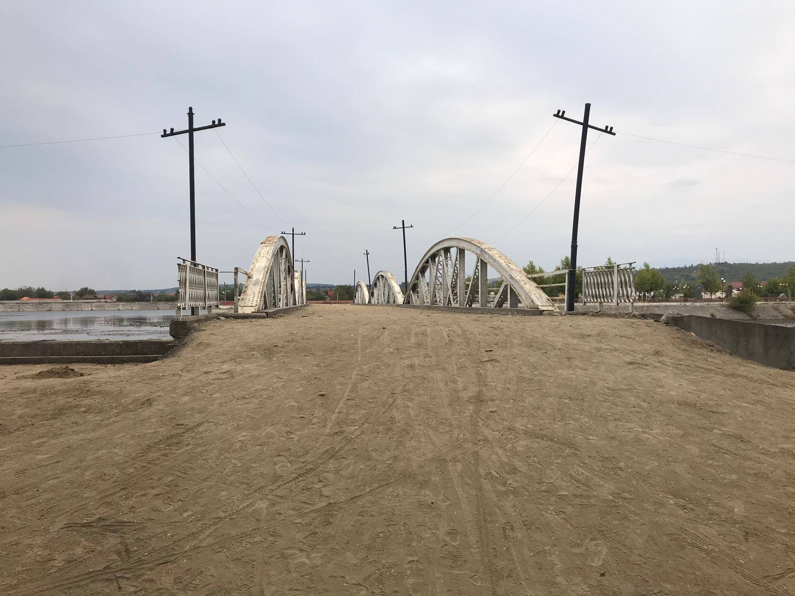 Podul spre insulița aflată în Parcul Central din Târgu Jiu, precum și zona din apropiere sunt acoperite cu pământ și pietre. Aici s-a filmat scena bătăliei de la 14 octombrie 1916 pentru producția cinematografică „Eroii de la Podul Jiului”, astfel încât a fost nevoie ca priveliștea să fie reconstituită cât mai fidel ca în timpurile respective. Doar că filmările s-au încheiat de mai mult timp, iar pământul și pietrele au rămas, spre nemulțumirea cetățenilor. „Este deranjant. S-au terminat filmările și nu s-au mai preocupat să ia pământul. O să plouă și se va transforma totul în nămol“, a spus o femeie supărată.