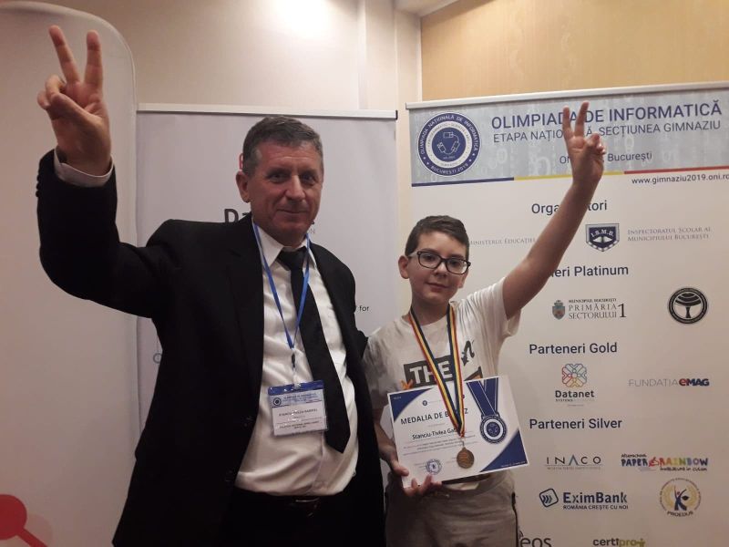 ,,Am avut la clasa a V-a medalie de bronz, obținută de Gabriel Tivlea-Stanciu, la prima participare, pentru că de la clasa a V-a începem. Am început pregătirea în decembrie-ianuarie, a muncit foarte mult, o să mai auziți de el cu siguranță. La clasa a VII-a, Vasiluță Alexandru Mihai a luat medalie de argint și mențiune de la minister, la clasa a IX-a- Popa Sebastian, medalie de argint, cei doi au mai fost. Materia de olimpiadă nu are legătură foarte mare cu materia de la școală, este mult, mult peste. Materia de a V-a de la olimpiadă este material de la a IX-a de la clasă. Există un barem, un prag minim pentru calificarea la Naţională, minim 80 de puncte din 200.La informatică este foarte greu, pentru că aplicându-se acest lucru e foarte dificil. Sunt două probleme și poți să le faci sau să nu le faci. În felul acesta, pe cele 90 de locuri de la Națională, de la a V-a s-au calificat doar 34 de copii din toată țara, pentru că nu au făcut baremul.