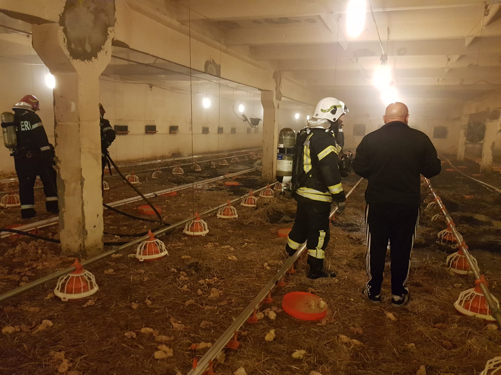 Peste 16.000 de pui au murit, azi-noapte, într-un incendiu izbucnit la o hală din județul Hunedoara. “Incendiul a izbucnit la o hală din cadrul unei ferme avicole din Mintia. În cursul nopţii, nouă pompieri militari de la Detaşamentul Deva au intervenit cu trei autospeciale pentru a opri ofensiva unei arderi mocnite ce a afectat stratul de protecţie din paie, aflat pe podeaua halei, pe o suprafaţă de 350 mp. În incintă se aflau 31.000 de pui. Din cauza fumului şi temperaturii ridicate au pierit 16.000 de pui de o zi. Pompierii au reuşit sa salveze 15.000 de pui şi să lichideze incendiul după mai bine de o oră de muncă. În incendiu a mai fost distrusă instalaţia de furajare şi adăpare din plastic pe o suprafaţă de aproximativ 100 metri liniari şi s-au deteriorat parţial pereţii, uşa şi trei geamuri. După stingerea incendiului, pompierii au concluzionat că arderea mocnită a fost generată de o defecţiune electrică apărută la aparatul de încălzit al halei”, a declarat Anemona Doda, purtătorul de cuvânt al ISU Hunedoara.