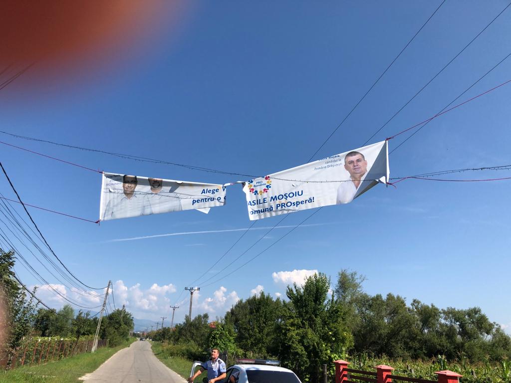 O mare parte dintre bannere candidatului Pro România la funcția de primar, Vasile Moșoiu, au fost tăiate în cursul acestei nopți. Asta în condițiile în care primarul comunei Drăguțești, Ion Popescu, contracandidatul lui Moșoiu, s-a lăudat, recent, cu sistemul de supraveghere video al comunei.
