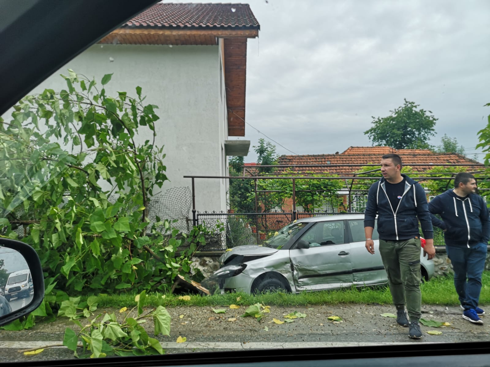 Din cauza drumului foarte avariat, șoferul unei mașini a intrat acum într-un copac aflat pe marginea străzii. Nu s-ar fi înregistrat victime.