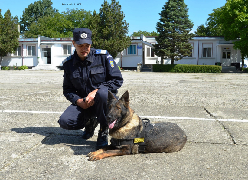 Câinele de serviciu, Oloba, a ieșit la pensie! Frumoasa ciobănească a participat la numeroase misiuni pe care le-a îndeplinit cu succes. IJJ Gorj anunță că ea va fi luată acasa de partenerul ei de serviciu, jandarmul Mihai Ianoși.