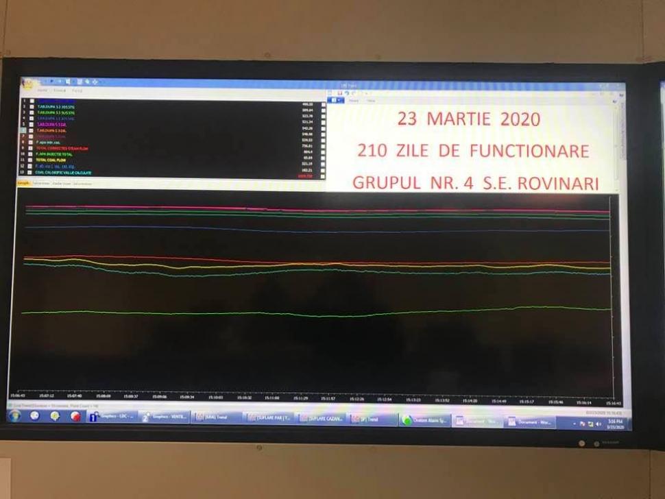 Performanță importantă realizată la Termocentrala Rovinari din cadrul Complexului Energetic Oltenia, acolo unde grupul 4 funcționează de 210 zile fără oprire.