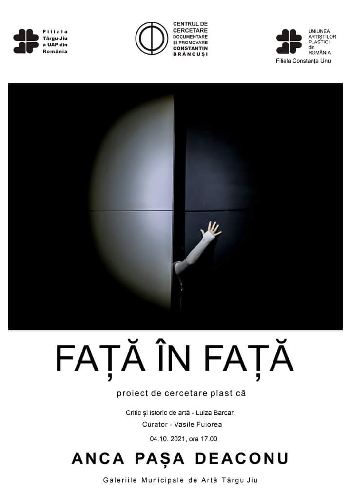 Filiala Târgu Jiu a Uniunii Artiștilor Plastici din România, în parteneriat cu Centrul de Cercetare, Documentare și Promovare “Constantin Brâncuși”, organizează luni, 04 Octombrie 2021, ora 17.00, vernisajul expoziției personale de arte vizuale/proiect de cercetare plastică “FAȚĂ ÎN FAȚĂ “, a artistei Anca Pașa Deaconu, membru UAP din România Filiala Constanța 1, ce va avea loc la Galeriile Municipale de Artă din Târgu Jiu, strada Traian nr. 27, parter. Expoziția…