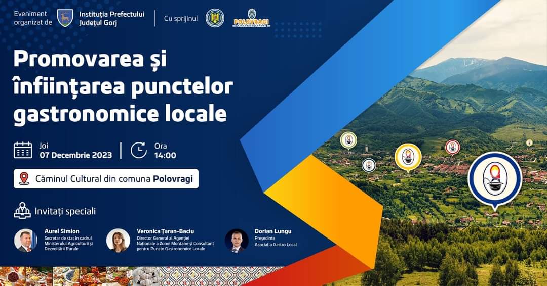 Gospodarii din zona submontană a județului Gorj sunt consiliați să își deschidă Puncte Gastronomice Locale.