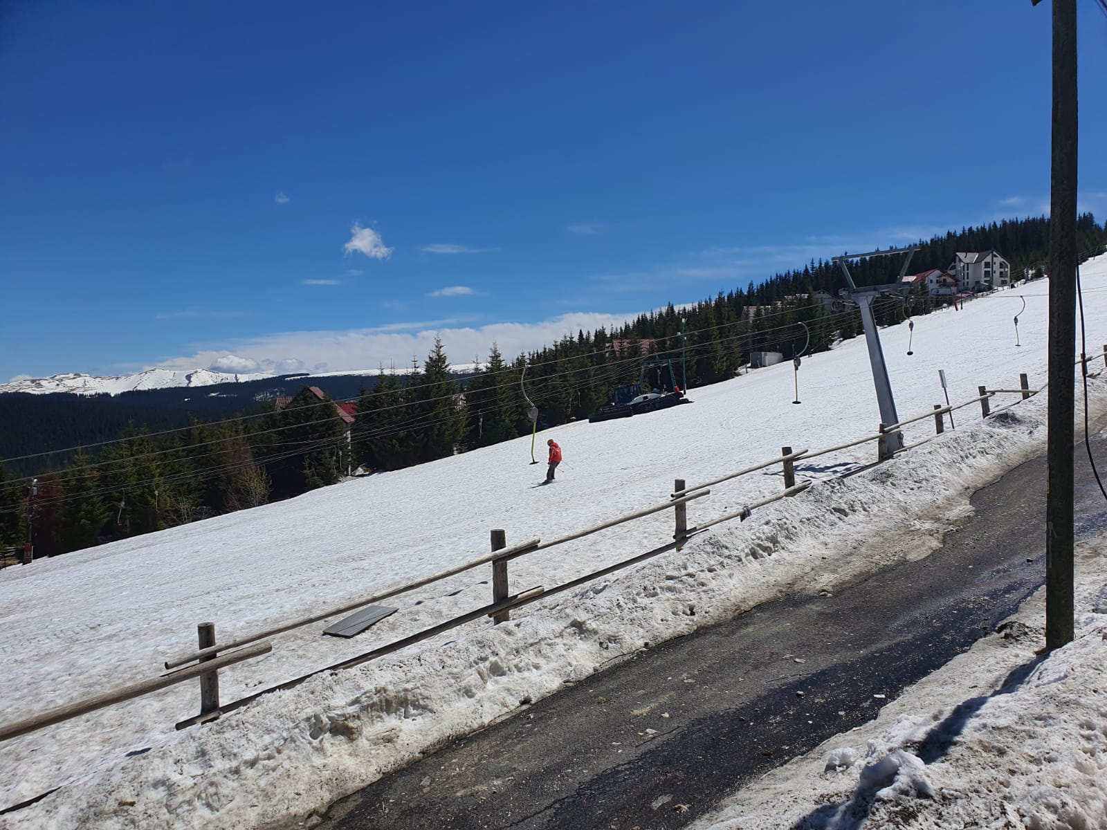Se schiază pe pârtia din centrul stațiunii Rânca. La această oră sunt zeci de persoane care sunt în zona pârtiei și care încă se bucură de faptul că pe final de primăvară mai pot fi practicate sporturi de iarnă la Rânca. Zăpada pe pârtie măsoară peste o jumătate de metru.