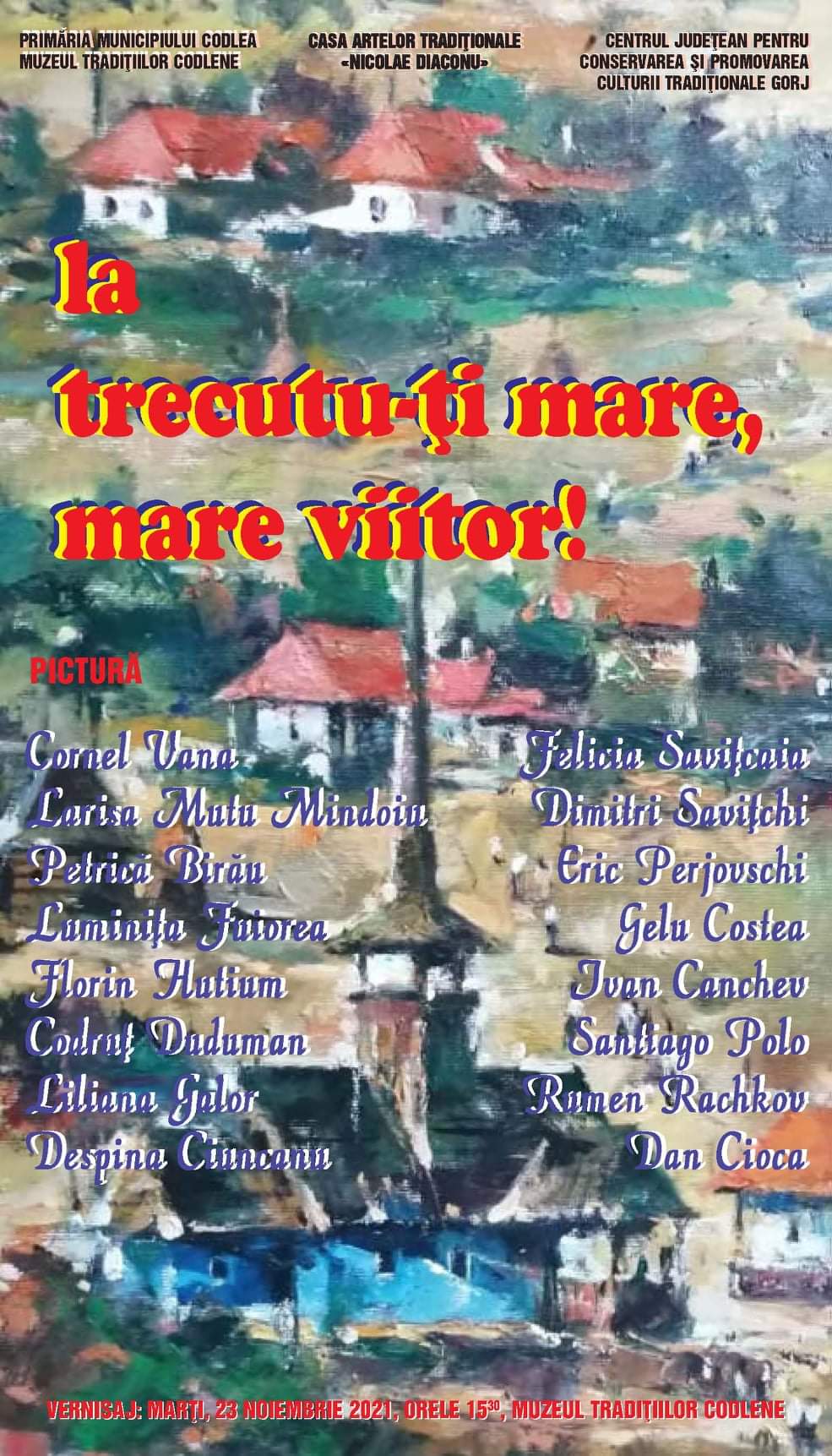 Centrul Județean pentru Conservarea și Promovarea Culturii Tradiționale Gorj organizează mâine, la Muzeul Tradițiilor Codlene, vernisajul expoziției de pictură “La trecutu-ți mare, mare viitor!”. Expoziția este organizată în colaborare cu Primăria Municipiului Codlea, Muzeul Tradițiilor Codlene și Casa Artelor Tradiționale “Nicolae Diaconu” și încheie ediția din acest an a GORJFEST.
