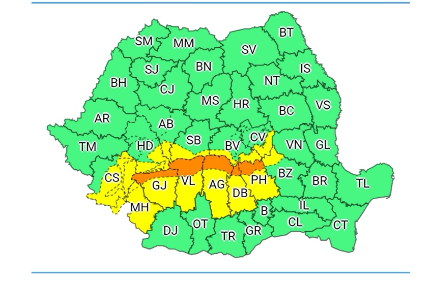 Fenomene vizate: ploi abundente; intensificări ale vântului, ninsori însemnate cantitativ și viscolite la altitudini de peste 1700 m