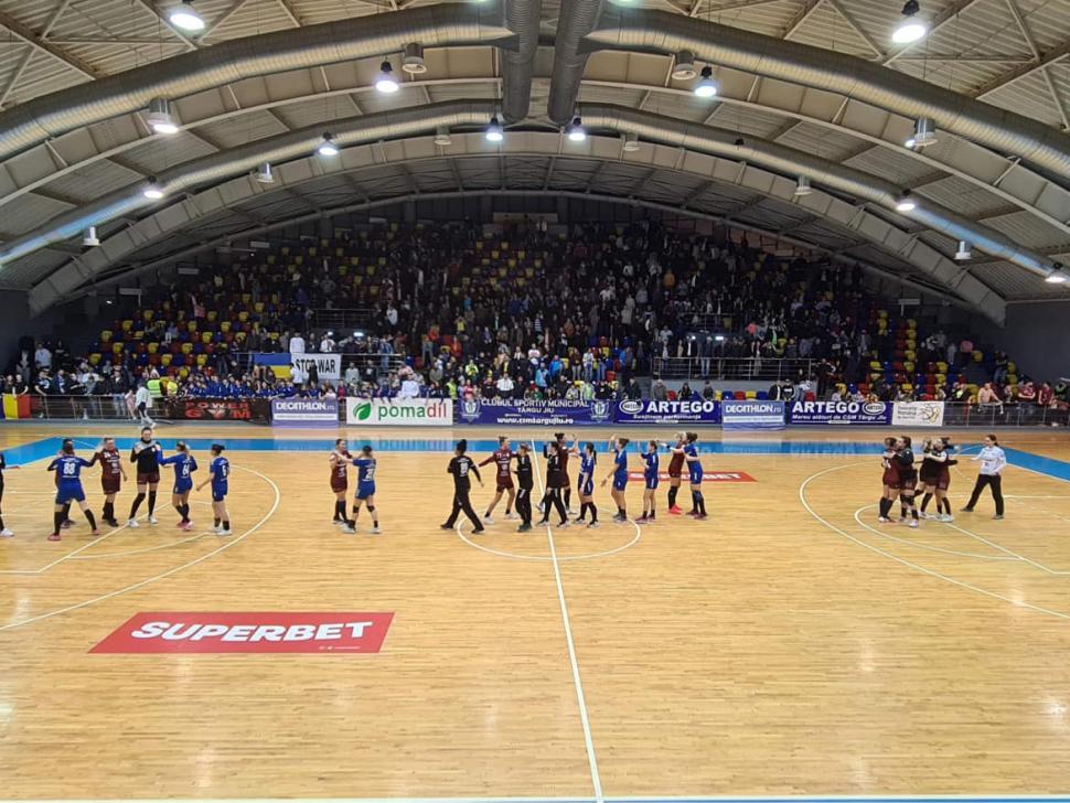 Handbalistele de la CSM Târgu Jiu s-au oprit în optimile Cupei României după un meci pierdut în faţa liderului din Liga Florilor. Rapid s-a impus în Sala Sporturilor din Târgu Jiu, scor 36 -22, singura consolare rămânând experienţa unui meci cu un adversar de top.