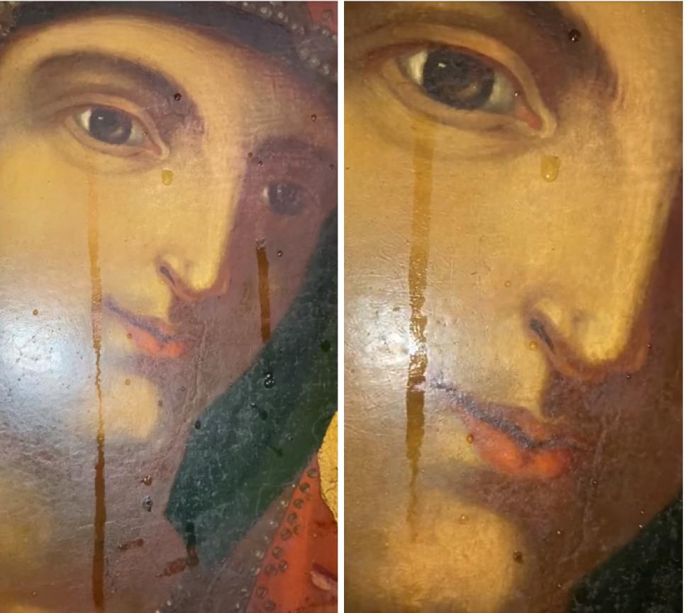 Credincioșii din comuna gorjeană Baia de Fier, care au participat marți la slujba oficiată la biserica monument istoric de lângă Peșteră, au rămas muți de uimire când au observat lacrimi curgând pe icoana Maicii Domnului. Vestea s-a răspândit repede, așa că biserică a fost luată cu asalt de peste o mie de credincioși veniți să vadă minunea.