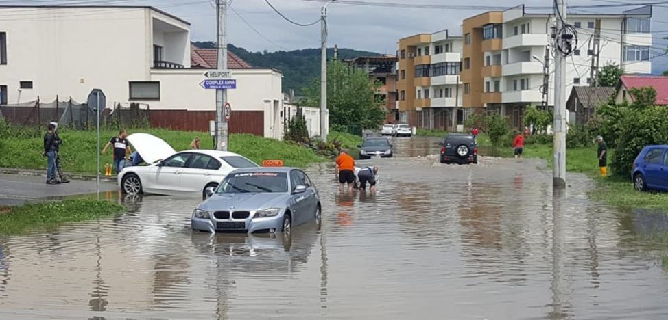 Mai multe străzi şi gospodării din municipiul Târgu Jiu au fost inundate în urma precipitaţiilor abundente care au căzut la orele prânzului.