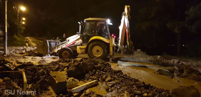 Pârâul care trece prin zonă a ieşit din matcă şi, alături de torenţii formaţi pe dealuri, au creat viituri care au inundat mai multe locuinţe. De asemenea, infrastructura rutieră a fost distrusă de viituri, iar ştrandul municipal a fost inundat pentru a treia oară în această lună. Potrivit ISU Neamţ, la numărul unic de urgenţă 112 s-au înregistrat zeci de apeluri din partea locuitorilor municipiului reşedinţă. Municipiul Piatra-Neamţ a fost, în noaptea de miercuri spre joi, sub avertizare Cod Roşu de ploi torenţiale şi descărcări electrice, populaţia fiind avertizată, de două ori, prin sistemul Ro-Alert, să se adăpostească şi să nu staţioneze sub arbori sau reţele electrice, potrivit Agerpres. Pentru gestionarea situaţiilor de urgenţă generate de Codul Roşu de fenomene meteo periculoase, începând cu ora 22,15 a fost activată grupa operativă, iar în sprijinul pompierilor din Piatra-Neamţ au fost chemate echipaje de la Detaşamentele de pompieri Roman şi Târgu Neamţ.