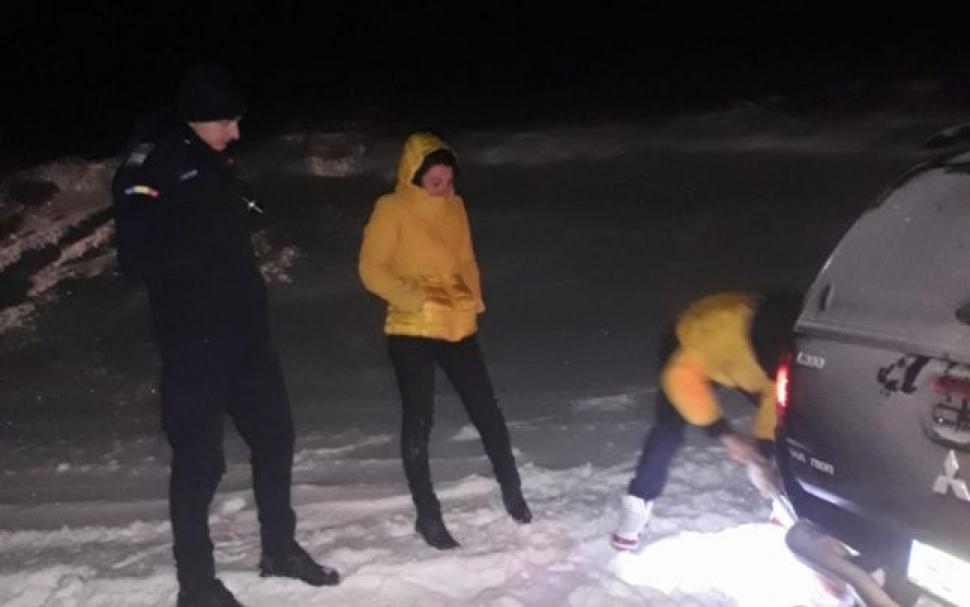 Doi turişti, soţ şi soţie, au rămas înzăpeziți pe Transalpina în prima zi a anului. Jandarmii din cadrul Postului montan Voineasa – Vâlcea au intervenit pentru a salva cei doi soți din Petroșani, care s-au aventurat pe șoseaua ce este oficial închisă.